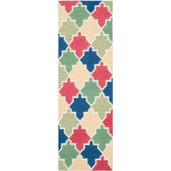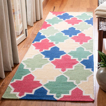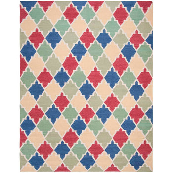 Perfect for any setting that demands a splash of color and a hint of artisanal charm, this rug is not just a floor covering but a statement of international craft. Its wool-cotton mix offers a soft texture that is pleasant to touch, while the flat weave construction ensures it is lightweight and easy to move, making it ideal for dynamic, contemporary living spaces.