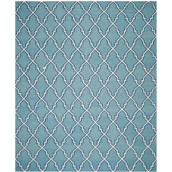 The serene light blue and ivory hues intertwine in a sophisticated geometric pattern that lends a modern yet timeless aesthetic to your space. Each intricately designed shape forms a compelling lattice structure that captivates the eye and elevates your home decor.