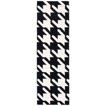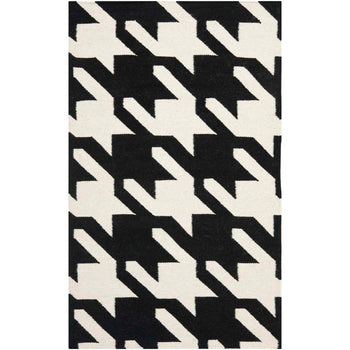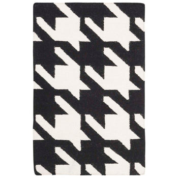 Discover the ultimate combination of timeless style and modern craftsmanship with our hand-woven accent rug. Sized at a convenient 2'6" x 4', this rug is a perfect addition to any space that calls for a dash of elegance and sophistication. The striking black and ivory color palette offers a bold contrast that can anchor any room, while its unique pattern injects a playful and contemporary touch.