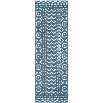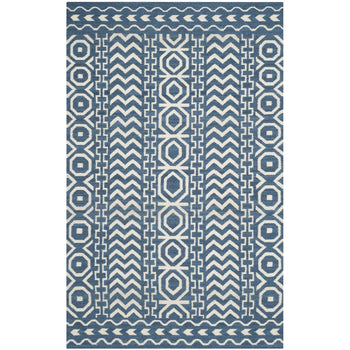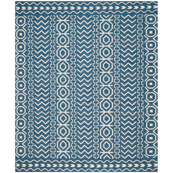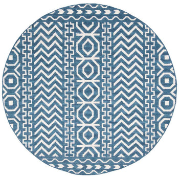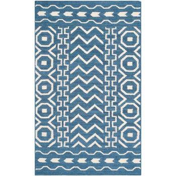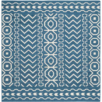 Emanating elegance in a rich DARK BLUE and IVORY color palette, the design showcases an intricate array of tribal-inspired motifs, creating a visual feast for the eyes. Made in India, this rug is a testament to the region's long-standing history in textile excellence.