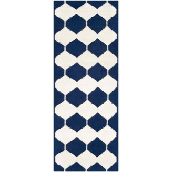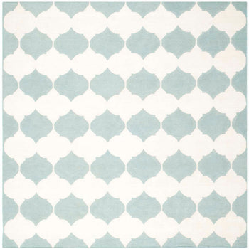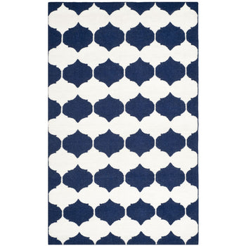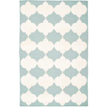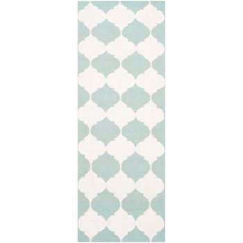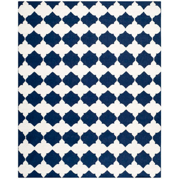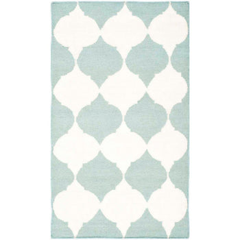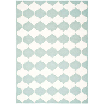 The rug's captivating pattern, as shown in the image, showcases an eye-catching blue and ivory geometric design that exudes sophistication and charm. The harmonious balance of the tranquil blue tones set against the soft ivory backdrop will effortlessly complement a variety of interior styles, from contemporary to classic.