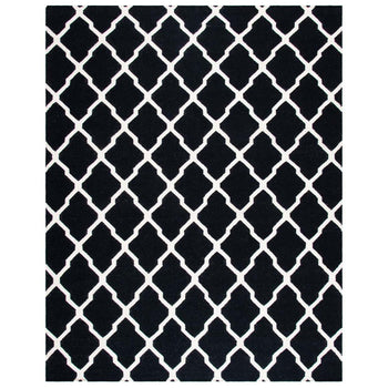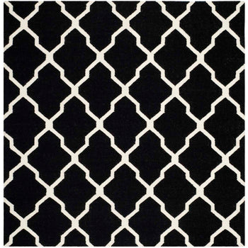Elevate your home d?cor with this stunning 2'-6" X 6' runner area rug, tastefully crafted in a classic black and ivory color palette. This sophisticated piece combines the timeless allure of a bold geometric lattice pattern with the luxurious texture of hand-woven craftsmanship.
