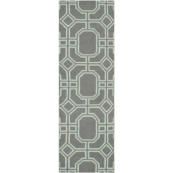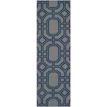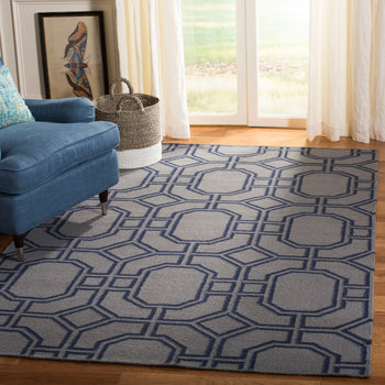 Crafted with meticulous attention to detail, this rug boasts a sophisticated palette of grey and light blue hues, perfectly complementing a wide range of interior color schemes. Its hand-woven flat weave construction not only ensures durability but also provides a uniquely tactile experience underfoot.