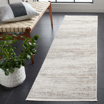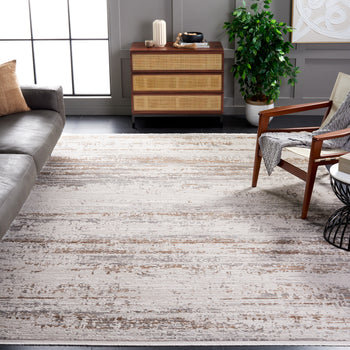 The sophisticated color palette of beige and grey brown merges harmoniously to create a serene yet dynamic visual effect that complements contemporary interiors. The modern style of the rug is highlighted by its engaging pattern, which showcases a distressed stripe design that adds texture and depth to the overall aesthetic.