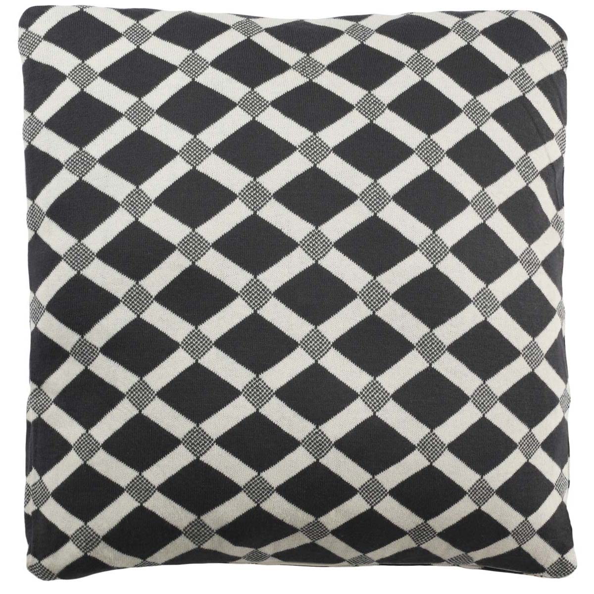 Add penthouse elegance to you living room or bedroom decor with the rich styling of the Diamond Knit Pillow by Safavieh. A chic, dark grey background becomes a beautifully framed diamond display in the detailed lattice mesh of this finely knitted 100 percent cotton accent pillow. The ideal accessory for contemporary, metro mod furnishings.