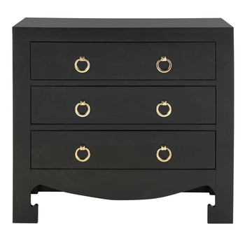 Ancient Asian sophistication is given a sleek modern update in this fabulous Dion Chest. Effortlessly emanating glamorous charisma, Dion's vogue black finish highlights the shimmering gold pulls on its three drawers and Paifang inspired apron.