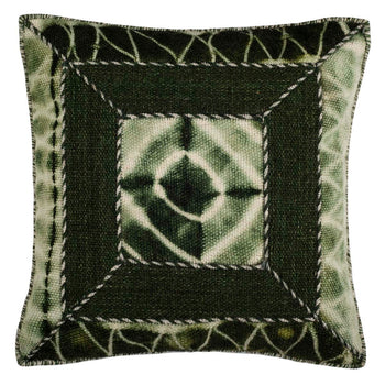 The ikat revisited. We delved into our archives of master printmakers and textile artists to create this dip dyed patch pillow in cilantro (set of 2). A combination of jute, wool and cotton creates a sensory and artful decorative accent in any room.