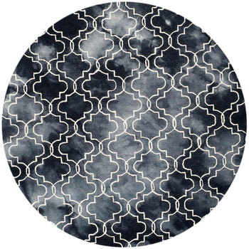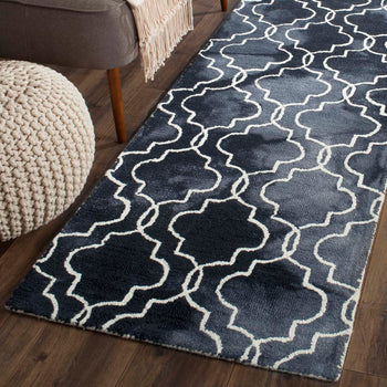 Hand-tufted in India, this piece is a testament to craftsmanship and quality, with a luxurious blend of 80% wool and 20% cotton that provides a plush feel underfoot. The high-contrast graphite and ivory hues form a bold, trellis-inspired pattern, delivering a sophisticated aesthetic that suits a variety of decor themes.