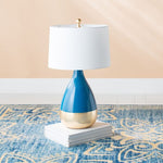 Inspired by the smooth curves and enchanting style that once charmed Aladdin, the Disney Charmer Lamp by Safavieh shines in room decor whether on or off. Timeless and absolutely today, this enticing table lamp flaunts soft blue hues against a glittering gold base and soft white shade. You won’t want to forget this lamp when looking for a fanciful addition to the kids’ bedroom or playroom, not to mention what a fashionable look it will bring to every other room in the house too.,Inspired by the smooth curves and enchanting style that once charmed Aladdin, the Disney Charmer Lamp by Safavieh shines in room decor whether on or off. Timeless and absolutely today, this enticing table lamp flaunts soft blue hues against a glittering gold base and soft white shade. You won’t want to forget this lamp when looking for a fanciful addition to the kids’ bedroom or playroom, not to mention what a fashionable look it will bring to every other room in the house too.