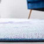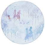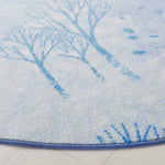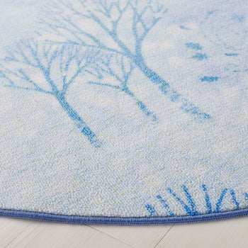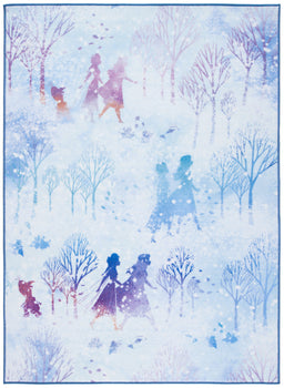 Bring the magic of a whimsical winter wonderland into your child's space with our enchanting area rug, measuring a generous 6'-7" x 9'. Capturing the playful essence of a fairytale, the rug features silhouettes of children and animals frolicking among delicate trees under a cascade of gentle snowflakes. The dreamy hues of light blue and purple blend seamlessly to create a serene backdrop that will spark imaginations and add a touch of fantasy to any room.
