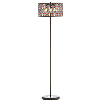 The venerated style of stained glass design is beautifully captured in the Disney Mosiac Floor Lamp by Safavieh. Jewel toned glass beads display a refined collage of color from the drum shade of this exquisite floor lamp. The perfect accompanying light for any accent chair or sofa, or to embellish the corner of a room, the Mosaic Floor Lamp lends stately elegance to room decor. ,The venerated style of stained glass design is beautifully captured in the Disney Mosiac Floor Lamp by Safavieh. Jewel toned glass beads display a refined collage of color from the drum shade of this exquisite floor lamp. The perfect accompanying light for any accent chair or sofa, or to embellish the corner of a room, the Mosaic Floor Lamp lends stately elegance to room decor.