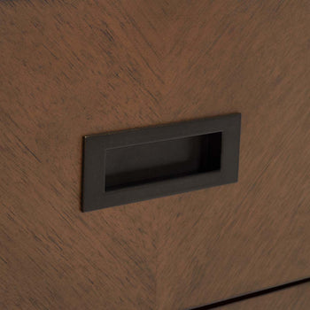 This Donald Nightstand is a sophisticated fusion of Mid-Century chic and contemporary class. Donald's herringbone-inspired pattern and dark walnut finish overflow with charisma, while two drawers provide ample storage beside a bed or sofa.