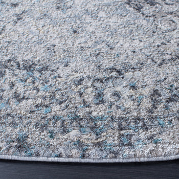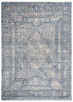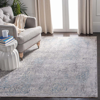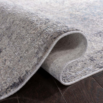The rug's pattern speaks of age-old designs with a modern twist, featuring a harmonious blend of grey and ivory hues that create a subtle yet impactful visual appeal. Its graceful traditional motif is meticulously executed, adding a sense of history and heritage to your interiors.