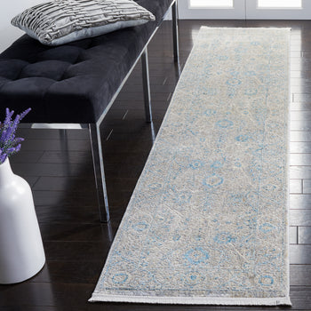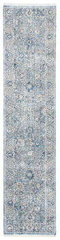 Introducing our sophisticated and elegantly crafted 2'-6" X 4' accent area rug, the perfect blend of traditional allure and contemporary charm to elevate any space in your home. With its serene palette of grey and blue hues, this rug exudes a sense of calm and refinement that can complement a variety of interior decors.