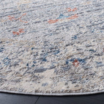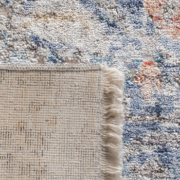 The chic grey backdrop is artfully interwoven with a vibrant, multi-color pattern that draws the eye, bringing a modern yet timeless aesthetic to your floor. The subtle interplay of colors includes inviting hues that create a serene yet dynamic atmosphere in your home.