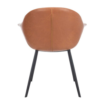 A new design classic, this Dublin Dining Chair revives retro style for today's contemporary interiors. Dublin's cognac PU leather and black iron legs blend the traditional comfort of a club chair with fresh, modern chic. Exposed stitching adds a couturier look. Sold in sets of two.