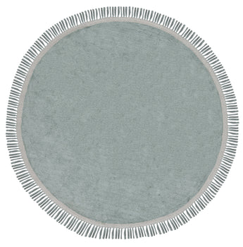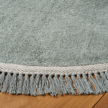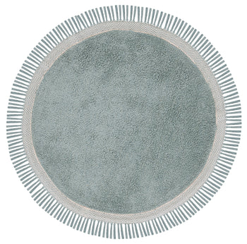 Enhance your living space with this beautiful 4'X4' Round Teal and Ivory Area Rug. This exquisite hand-woven masterpiece is the perfect size and shape to bring a touch of elegance to any room. Crafted in India, it showcases the fine craftsmanship that this region is renowned for. Made from 100% cotton, it not only adds aesthetic appeal but also promises lasting durability and ultimate comfort underfoot. Its 3/8" pile height is plush enough for your comfort, yet low enough to fit under doors. With a chic and classic design, it features stunning shades of teal and ivory for an effortlessly stylish look. Equally important, it's washable, for easy and worry-free maintenance. This rug is more than just a floor covering, it's a piece of art that adds serenity and elegance to your decor. Transform your home with this stunning teal and ivory round area rug!