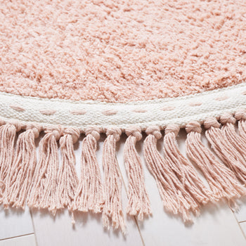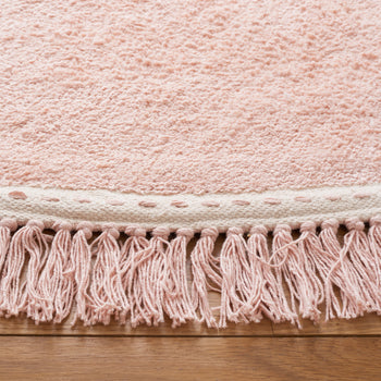 Crafted with meticulous attention to detail in India, this rug exudes quality and sophistication. The soft pink and ivory hues blend seamlessly to create a harmonious look capable of complementing a wide range of interior decors, from modern minimalism to vintage whimsy.