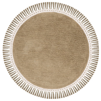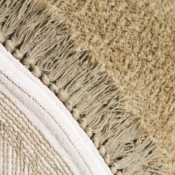 Adorned with a simple yet stunning pattern that emanates from the textural contrast and fringe detail along the border, this rug captures the essence of artisanal beauty. Its washable nature promises practicality along with its aesthetic appeal, making it an ideal choice for high-traffic areas or homes with children and pets.