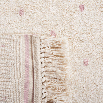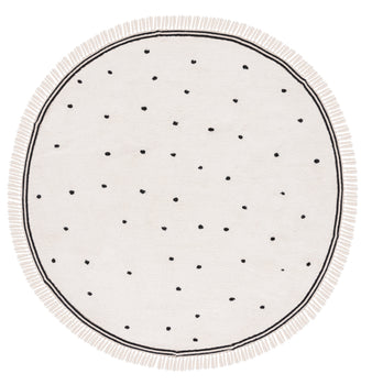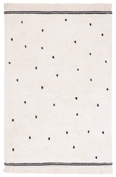 Crafted using skilled handwoven techniques, this rug exhibits a charming ivory base color adorned with an eye-catching black dotted pattern. Each dot is distributed with an artistic randomness that brings a playful yet sophisticated vibe to your decor. The rug is not only stylish but also practical, as it is easily washable, ensuring that it remains pristine with minimal effort.