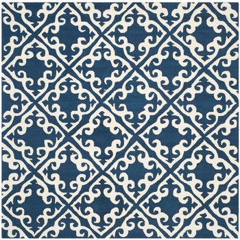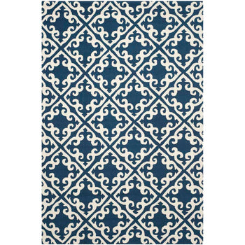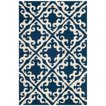 Invite a blend of tradition and modernity into your home with this exquisite navy and ivory accent rug, a remarkable piece that will stand the test of time both in style and durability.