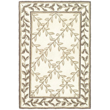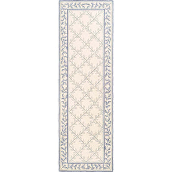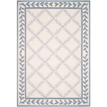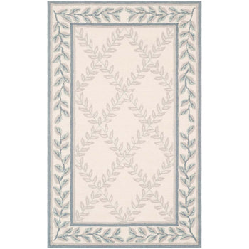 Introducing our exquisite 2' X 3' accent area rug, an elegant piece that combines timeless charm with intricate craftsmanship. This rug showcases a harmonious palette of ivory and light blue hues, exuding a serene and inviting ambiance for any room. The delicate pattern features a graceful intertwining vine motif enclosed within geometric borders, lending a touch of classic sophistication to your space.