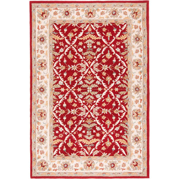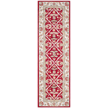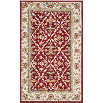 Elevate your living space with this exquisite hand-hooked accent rug, perfectly sized at 2 feet by 3 feet for versatile placement in any room. Crafted with care in China, this rug boasts a rich blend of red and ivory hues that instantly imbue your home with warmth and sophistication.