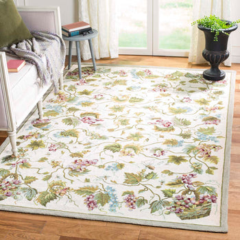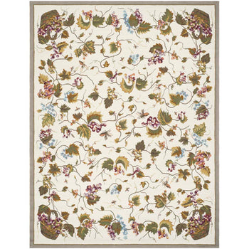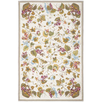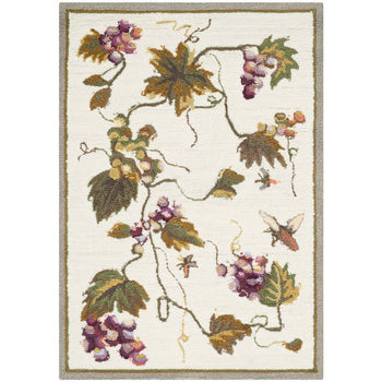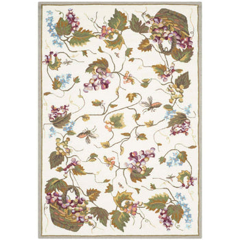 Crafted with meticulous attention to detail, this rug showcases a lush, romantic botanical theme, perfect for adding a touch of nature's beauty into your home. Its intricate pattern features gracefully entwining vines, detailed leaves, and clusters of grapes, accented by fluttering butterflies that bring the garden indoors.