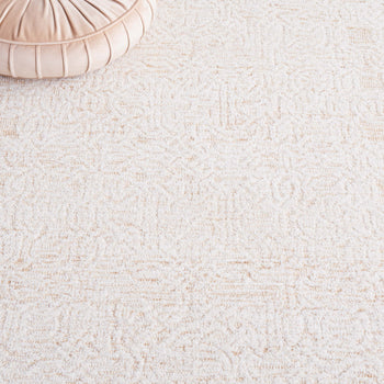 Exhibiting a modern style that complements contemporary interiors, the rug boasts a subtly textured pattern that catches the eye without overwhelming the senses. The design features organic, abstract shapes intricately hand-tufted to create a tactile experience that encourages barefoot indulgence.