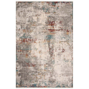 Made in Turkey, this rug is a blend of high-quality materials consisting of 33.8% Viscose, 40.4% Acrylic for the pile, complemented by 18% Weft, 5.8% Warp, and 2% Latex, providing both comfort and resilience. The subtle hues of light grey and beige fuse with the rug's texture to create a visually soothing palette that accentuates any room decor.