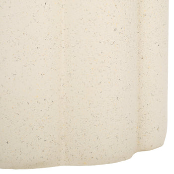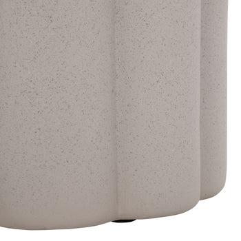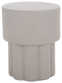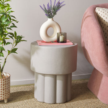 Liven up your space with the sculptural drama of our Eldrick accent table. Achieving the perfect balance between clean lines and curves, our accent table attains a chic and sculptural presence. Its sleek cylindrical profile elevates any corner with soft elegance. A rich fluted detail brings a dash of drama to our contemporary accent table. It is cast in a lightweight material with a soothing and subtly textured, plaster-like finish. An art-forward accent, our table can add visual interest to any sofa or armchair. It can serve as a sculptural pedestal for your favorite decor items.