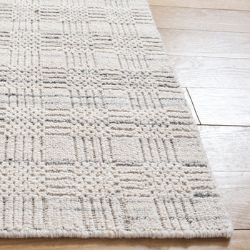 Made from 80 percent wool and 20 percent cotton, this rectangle rug offers a comfortable surface underfoot with a height of 3/8". Its minimalist design allows it to blend seamlessly with various decor styles, making it a versatile addition to your home. Whether placed in a living room, bedroom, or office, this rug enhances the ambiance of any space with its simple charm and sophisticated aura.