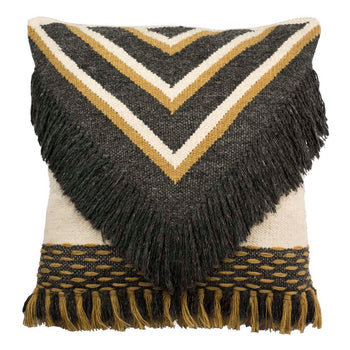 The well traveled look of nomadic motifs is beautifully displayed in the Elettra Pillow, a comfortable Decor accent of dimension rich design. Styled in an earthy color palette, wool and cotton yarns with textured stitching and fringe add a striking pop of pattern to couches and benches. Elettra is a popular choice for both global glam and nature inspired styled spaces.