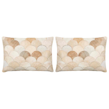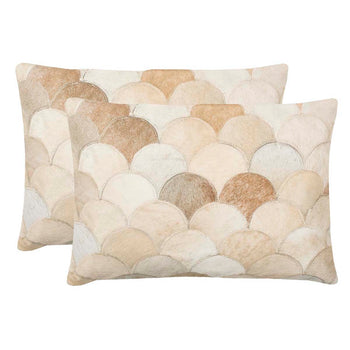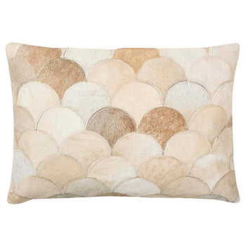 Elegantly textural, the Elita Pillow is crafted of scalloped cowhide cutouts, each hand stitched to create a decorative accent that complements every design style from classic to contemporary. Shown in a blend of cream tones, this pillow is backed with luxurious solid suede.