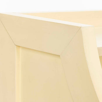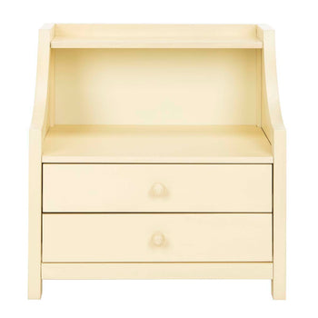 A contemporary classic, this 2 drawer nightstand brings modern romance to the bedroom with its blend of clean lines and soft curves. Finished in a soothing white hue, its two generous drawers feature charming carved details. Designers use them in pairs.