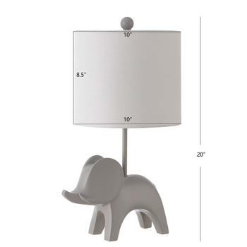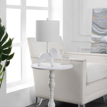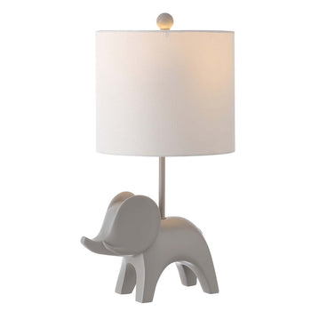 A natural beauty, this adorable contemporary elephant lamp is a delightful focal point in any kid's room. Ideal for new moms and dads, its loveable design was crafted with white ceramic to highlight its darling details. Its white shade is complimentary.