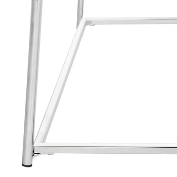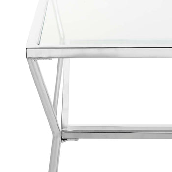 The iconic architecture of Paris'slatest foundation for contemporary art inspired this glass coffee table. Designed for the cosmopolitan interior, its metallic chrome finish and sleek glass angles create an elevated modernist aesthetic. A modern classic.