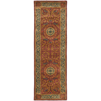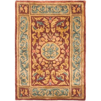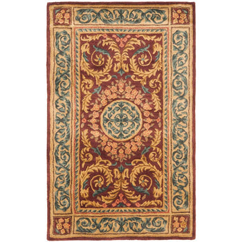 Add a touch of luxury and heritage to your home with this exquisite burgundy and gold wool accent rug that marries the richness of Indian rug-making traditions with the quality you desire.