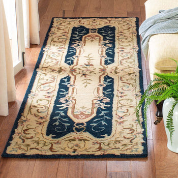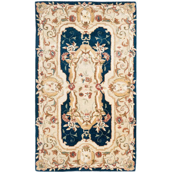 Elevate your living space with the timeless elegance of our hand-tufted wool area rug. Crafted with precision in India, this exquisite 3' X 5' small rectangle rug features a luxurious navy and beige color palette that seamlessly blends with both classical and contemporary decors.