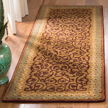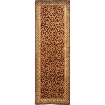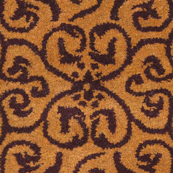 Crafted with meticulous care, the rug features an ornate pattern that captures the essence of classic decor. The brown backdrop is adorned with an intricate scroll and floral motif, creating a timeless look that is both sophisticated and inviting.