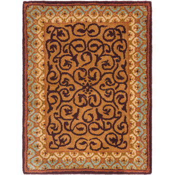 Introducing our exquisite 3' X 5' small rectangle area rug, a perfect symphony of traditional design and contemporary hues. Elegantly hand-tufted in India, this woolen masterpiece boasts a rich blend of brown and blue tones, providing both comfort and style to any room.