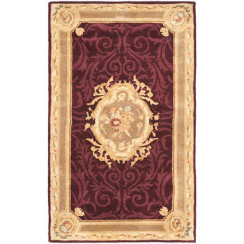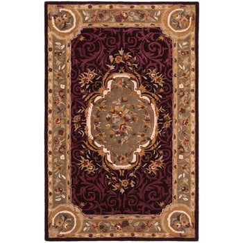 Elevate your space with this exquisite 2' x 3' accent rug, a perfect fusion of tradition and luxury. Hand-tufted in India with scrupulous attention to detail, this dark red and dark beige area rug showcases a compelling pattern that draws from classic design motifs, imbuing your home with an elegant and timeless aesthetic.