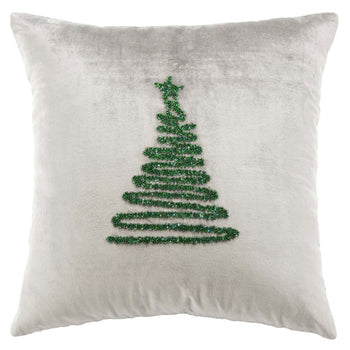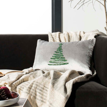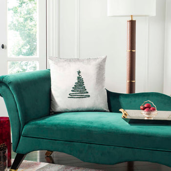 Chic and charming, the Enchanted Evergreen Pillow adds holiday cheer to modish interior Decor. Made from silky viscose and soft cotton and colored in an elegant hue, Enchanted Evergreen is a stylish update on traditional seasonal accents. A tinsel Christmas tree motif imparts shimmering, fashion now vibes on sofas, benches, beds and accent chairs.