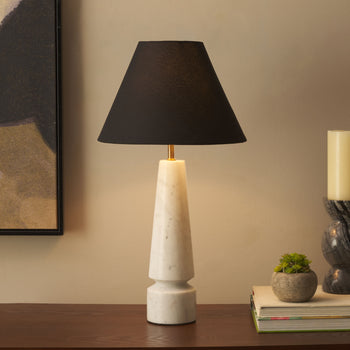 Illuminate your space with elegance through the Enza Table Lamp. Featuring a marble body, this lamp brings a touch of sophistication to any room. The white marble design provides a sleek, contemporary look that complements a variety of decor styles. Topped with a fabric shade, the Enza table lamp creates a warm, inviting glow perfect for relaxation or focused tasks. Whether it graces your bedside, desk, or living room, this lamp enhances your environment, offering a refined aesthetic. With its understated beauty and timeless material, the Enza table lamp is a versatile addition to your home, blending seamlessly into diverse spaces.