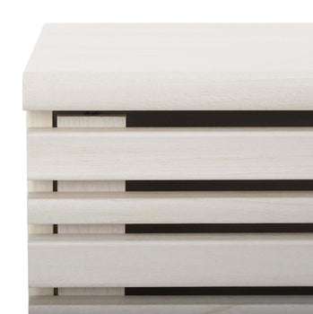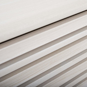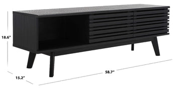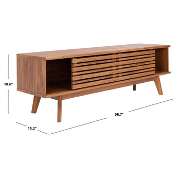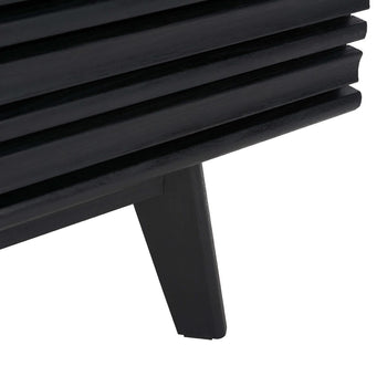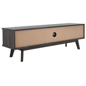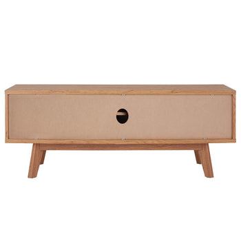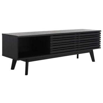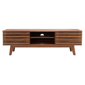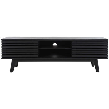 Retro charm meets contemporary chic in this esma media stand. Designed to perfectly blend with any decor, esma's smooth finish beautifully highlights its two slatted doors and splayed wooden legs. Two shelves provide easy access storage for devices, while a clever back cut out perfectly hides cables or wires.