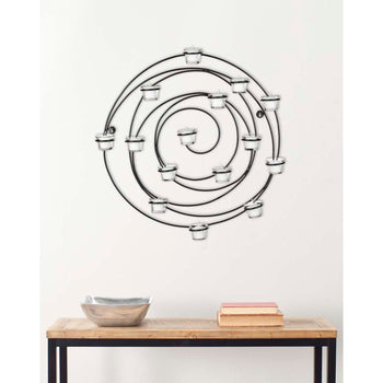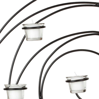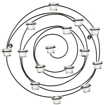 With glass holders for 15 tea light candles, this circular wall sconce will set any wall aglow. Carefully wrought from iron with a striking black finish, this wall mount candle holder adds a swish of life to any room.