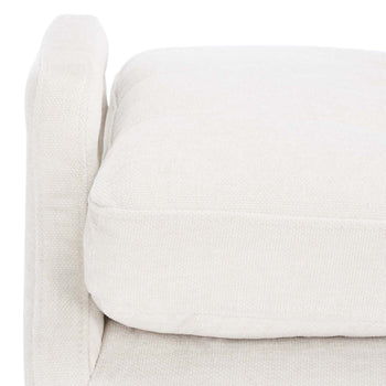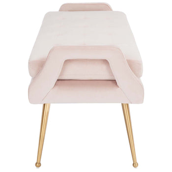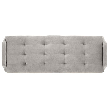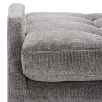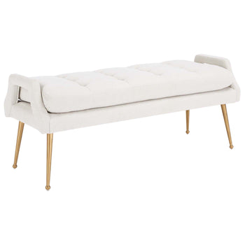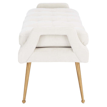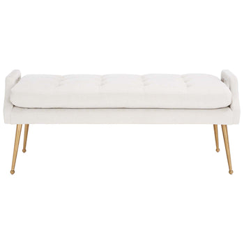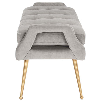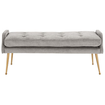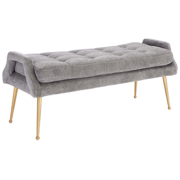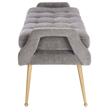 The ideal finishing touch to today's contemporary furnishings, this Everdeen Bench exudes sophistication. Everdeen's light grey pillow-top cushion and upholstered arms are ultra-soft to the touch, and sleek brushed gold legs elevate its aesthetic prowess. Channel tufted details complete the lavish look.