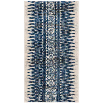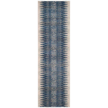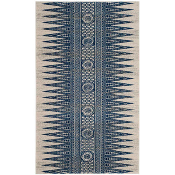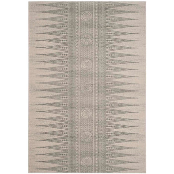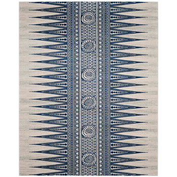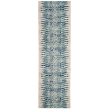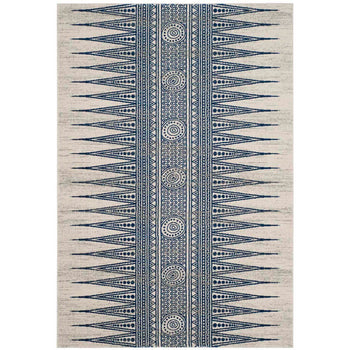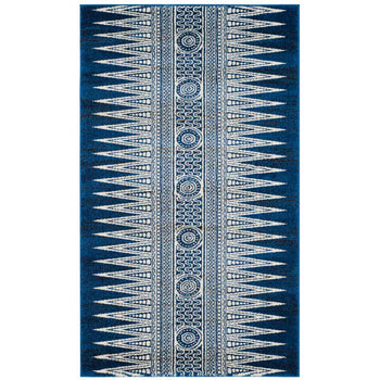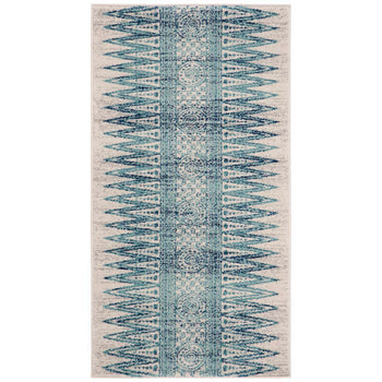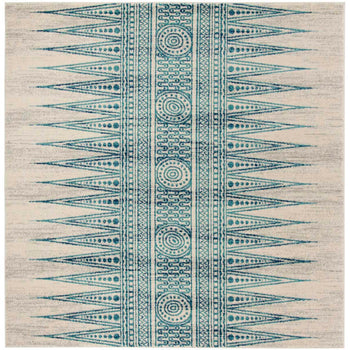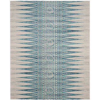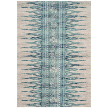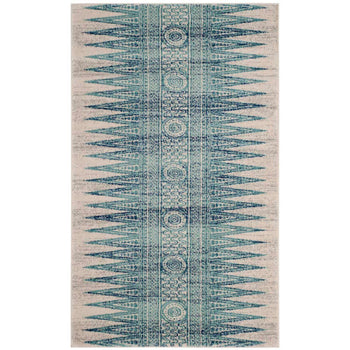 The rug features a striking design that showcases mesmerizing patterns, highlighted by the contrast of ivory and turquoise shades. These carefully selected colors vibrate with energy, bringing to life the intricate details and lending an aura of serene sophistication to any room. The patterns draw from classical inspirations, seamlessly infusing them with a fresh, contemporary feel that captures both the eye and the imagination.