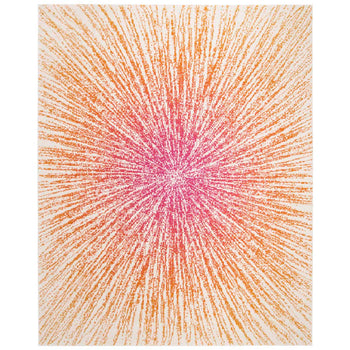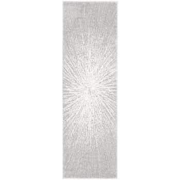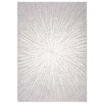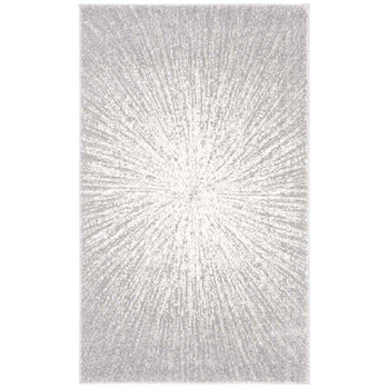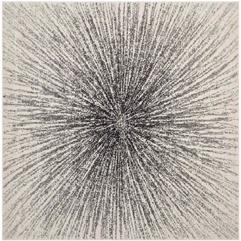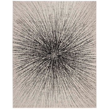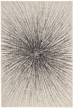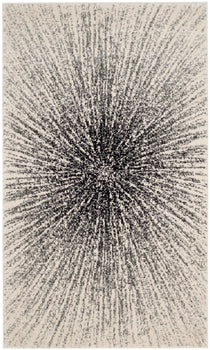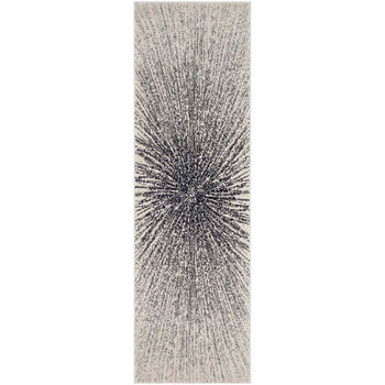 Introduce timeless style and modern sophistication to your space with our power-loomed accent rug. Crafted in the enchanting color palette of black and ivory, this 2'-2" X 4' rug is not just a floor covering but a statement piece. The striking pattern, reminiscent of a burst of light or a starry night, adds a dynamic and eye-catching element to your decor.