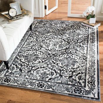 The neutral palette of ivory and grey makes this rug a versatile choice that can complement a wide range of decor styles, adding warmth and texture to your floors. The border design frames the central pattern, creating a focal point that draws the eye and enhances the overall aesthetic of any interior.